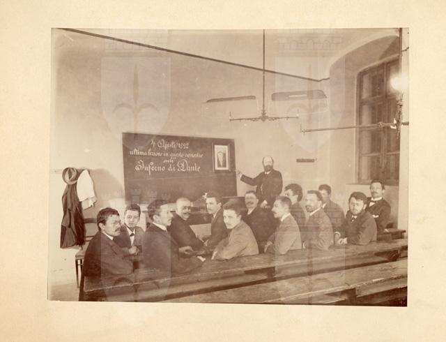 Gruppo di allievi con Filippo Zamboni: ultima lezione in questo semestre sull'Inferno di Dante: Vienna 4 aprile 1892