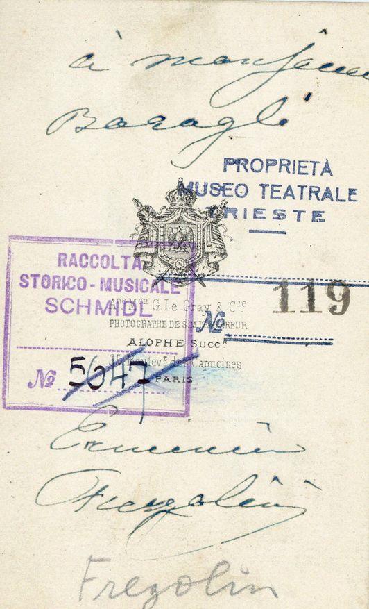 Si esibì al Teatro Grande di Trieste nel 1842 in: "Corrado di Altamura" e "Beatrice di Tenda" e nel 1844 in: "Elena da Feltre", "Ernani" e "Lucrezia Borgia"