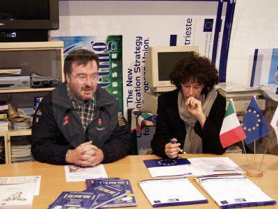 L'assessore Fulvio Sluga e la dottoressa Maila Zarattini nella sede dell'Infopoint Europa presentano l'iniziativa