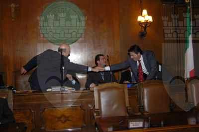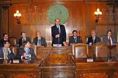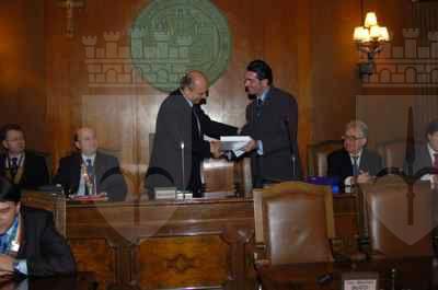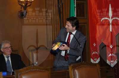 Il sindaco Roberto Dipiazza ed il Presidente del Consiglio comunale Bruno Sulli ed l'assessore comunale Maurizio Bucci con il presidente di Round Table Italia Maurizio Giudici e gli altri rappresentanti presenti al Meeting organizzato dalla Round Table Italiana in collaborazione con il Comune di Trieste, durante l'incontro avvenuto nella sala del Consiglio del Municipio.