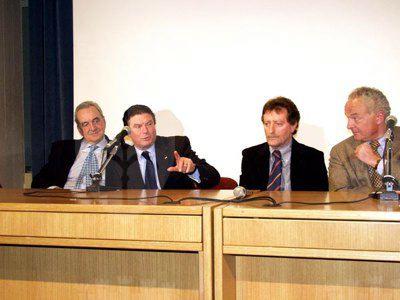Presenti sul palco nell'auditorium del Museo Revoltella il sindaco Dipiazza, i figli Bruno e Tito, l'onorevole Gianni Rivera, l'allenatore Cesare Maldini, il giornalista Bruno Pizzul, il presidente della Camera di Commercio Paoletti