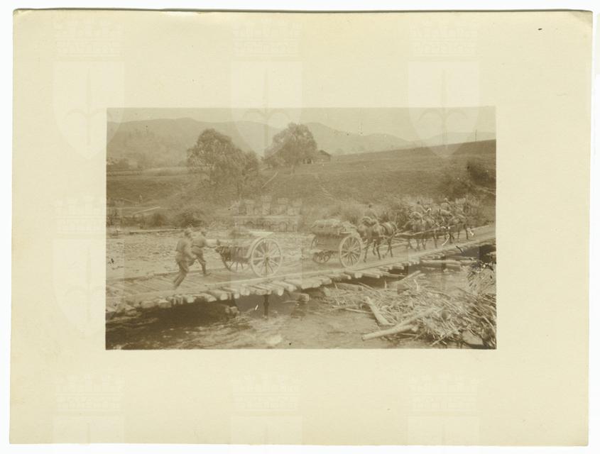 L'artiglieria austriaca passa il ponte costruito dallo squadrone tecnico del 12. Reggimento Ulani in Volinia