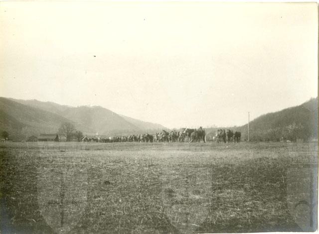 Lo squadrone tecnico si riposa durante la marcia nella valle del fiume Maros (Mureș) : 2 novembre 1916