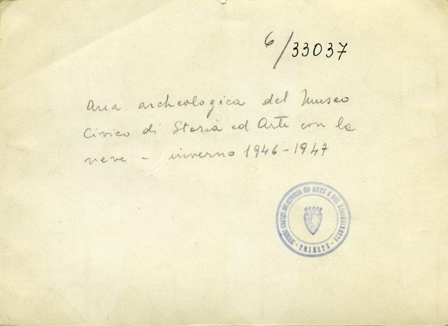 Veduta dell'area archeologica antistante al Museo civico di Storia e Arte di Trieste innevata. La fotografia è stata scattata durante l'inverno a cavallo tra il 1946 e il 1947.