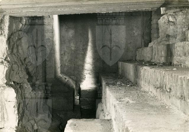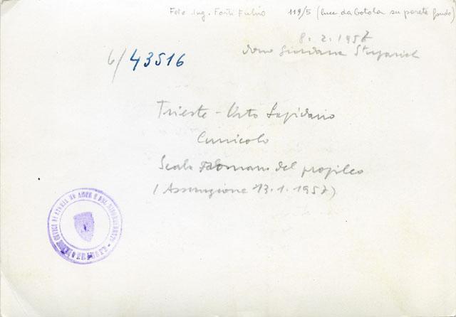 Scala del propileo romano visibile all'interno del cunicolo sotterraneo accessibile dal muraglione che sostiene il sagrato della Cattedrale di Giusto. La scalinata apparteneva a un edificio, identificabile con un propileo o con un ingresso monumentale, caratterizzato da due avancorpi con colonne e una scalinata centrale che conduceva a un portico colonnato. L'imponente struttura consentiva l'accesso a un recinto retrostante, forse adibito a scopi religiosi. Il monumento, visibile in parte all'interno del cunicolo e in parte inglobato nelle murature medievali del campanile di San Giusto, risale alla metà del I sec. d.C.