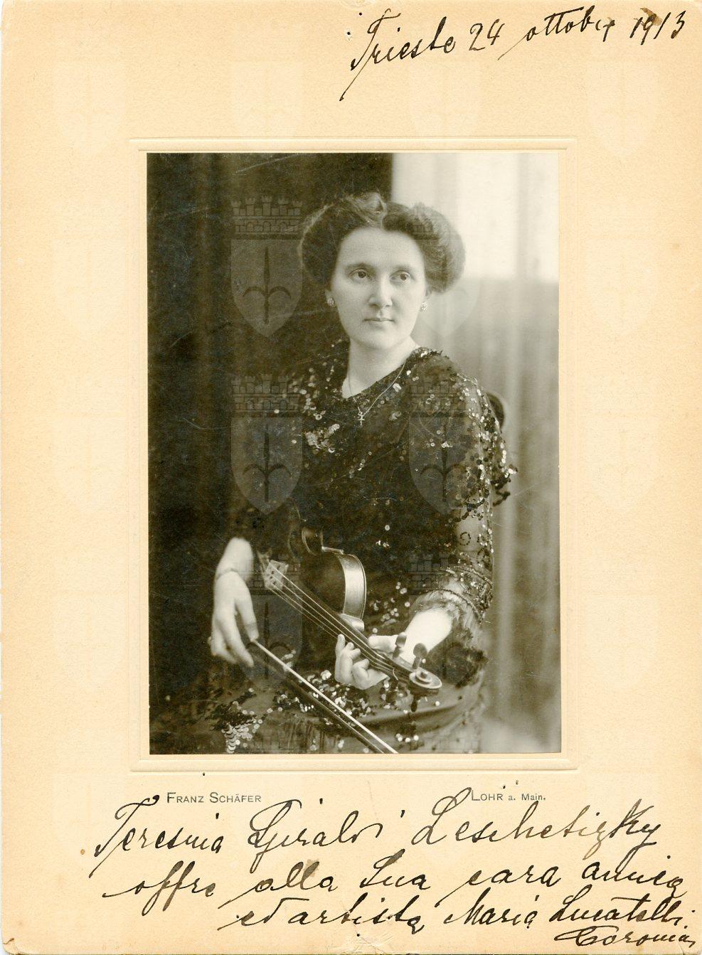 Allieva del M.° Alberto Castelli fu poi concertista e insegnante al Conservatorio Tartini di Trieste.