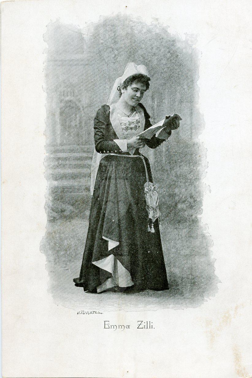 In costume nel ruolo di Alice in "Falstaff". Soprano italiano, particolarmente nota per avere creato il personaggio di Alice nel Falstaff di Giuseppe Verdi. Si esibì a Trieste nel 1892 al Politeama Rossetti in "Mefistofele", nel 1893 al Comunale in "Falstaff" e nel 1894 all'Anfiteatro Fenice.