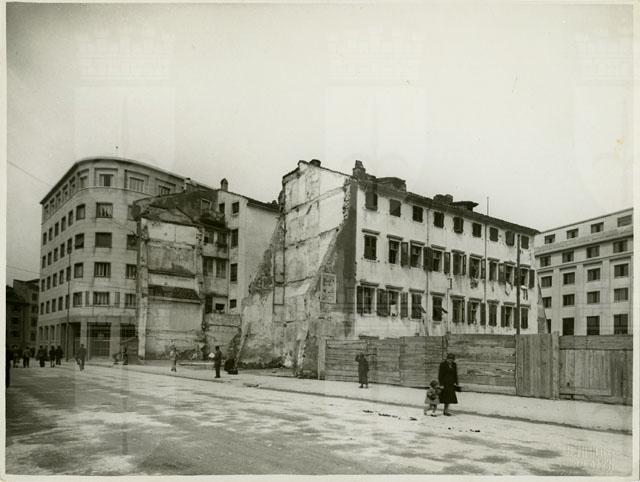 A destra, in primo piano, la facciata della casa di Androna Gusion, al civico 120. Immediatamente a sinistra vi è palazzo Costanzi e all'estremità sinistra il nuovo palazzo del Genio Civile, costruito direttamente dal Genio Civile tra il 1937 e il 1941 successivamente allo sventramento di Cittavecchia.