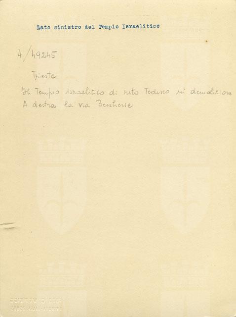 Il Tempio israelitico di rito tedesco in demolizione. Sulla destra è via Beccherie.