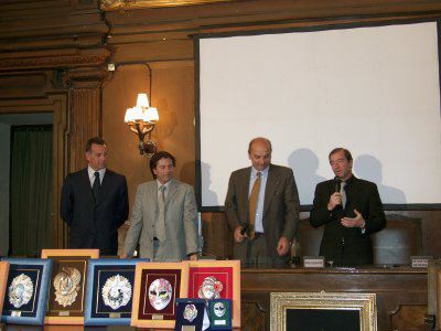 Il sindaco Roberto Dipiazza, Fabio Scoccimarro presidente della provincia, l'assessore Maurizio Bucci, Roberto De Gioia presidente del Comitato «Trieste in Palio» premiano i vincitori nella sala del consiglio comunale
