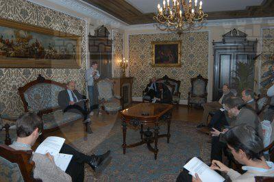 Il sindaco Roberto Dipiazza parla alla stampa nel salotto azzurro del Municipio