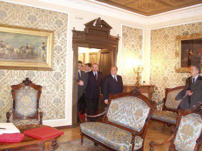 ll Presidente del Consiglio Silvio Berlusconi accompagnato dall'onorevole Roberto Antonione incontra il sindaco Roberto Dipiazza, il vicesindaco Renzo Codarin, gli assessori Roberto Menia, Maurizio Bucci, Giorgio Rossi, Fulvio Sluga