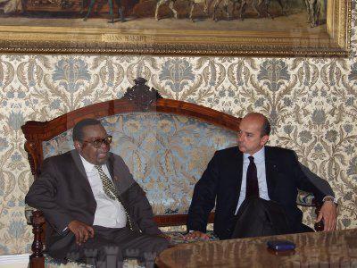 Il Sindaco Roberto Dipiazza con l'ambasciatore del Sud Africa Anthony Mongalo durante l'incontro nel salotto azzurro del Municipio.