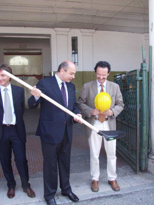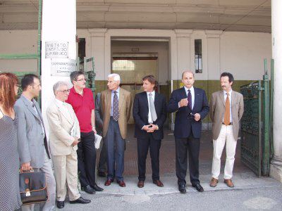 Il sindaco Roberto Dipiazza accompagnato dagli assessori Maurizio Bradaschia e Giorgio Rossi in visita al cantiere con i presidente e vicepresidente del consiglio comunale Bruno Sulli e Maurizio Ferrara e Alessia Rosolen consigliere comunale