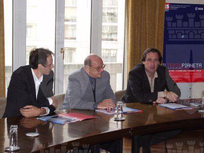 L'assessore comunale Roberto Menia con il direttore Fabio Carniello ed il presidente dell'Immaginario scientifico Enrico Caratti, durante la presentazione della mostra multimediale.