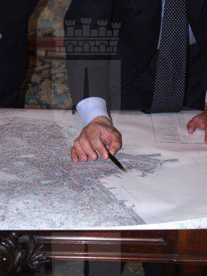 Il sindaco Roberto Dipiazza con l'asssessore comunale Giorgio Rossi durante la presentazione nel Salotto azzurro del Municipio.