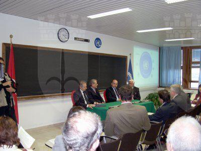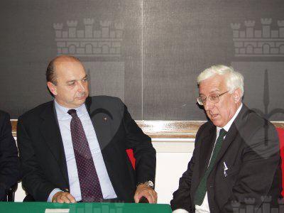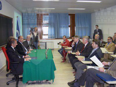 Il sindaco Roberto Dipiazza con direttore ad interim del Centro di fisica Erio Tosatti e l'ambasciatore italiano all'Unesco di Parigi Francesco Caruso.