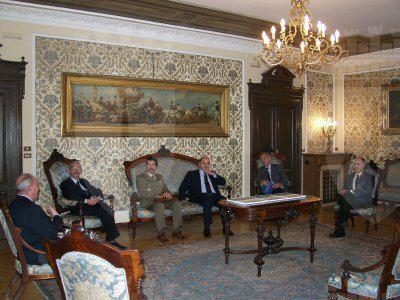 Il sindaco Roberto Dipiazza ed il consigliere Salvatore Porro incontrano il colonnello Gesildo Tarquini ed i rappresentanti del l'Associazione Nazionale Arma di Cavalleria nel salotto azzuro del Municipio.