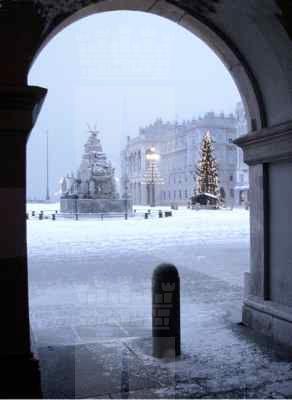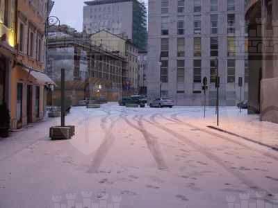Piazza Unità d'Italia, il Molo Audace e le Rive, via Malcanton e piazza della Borsa sotto la neve