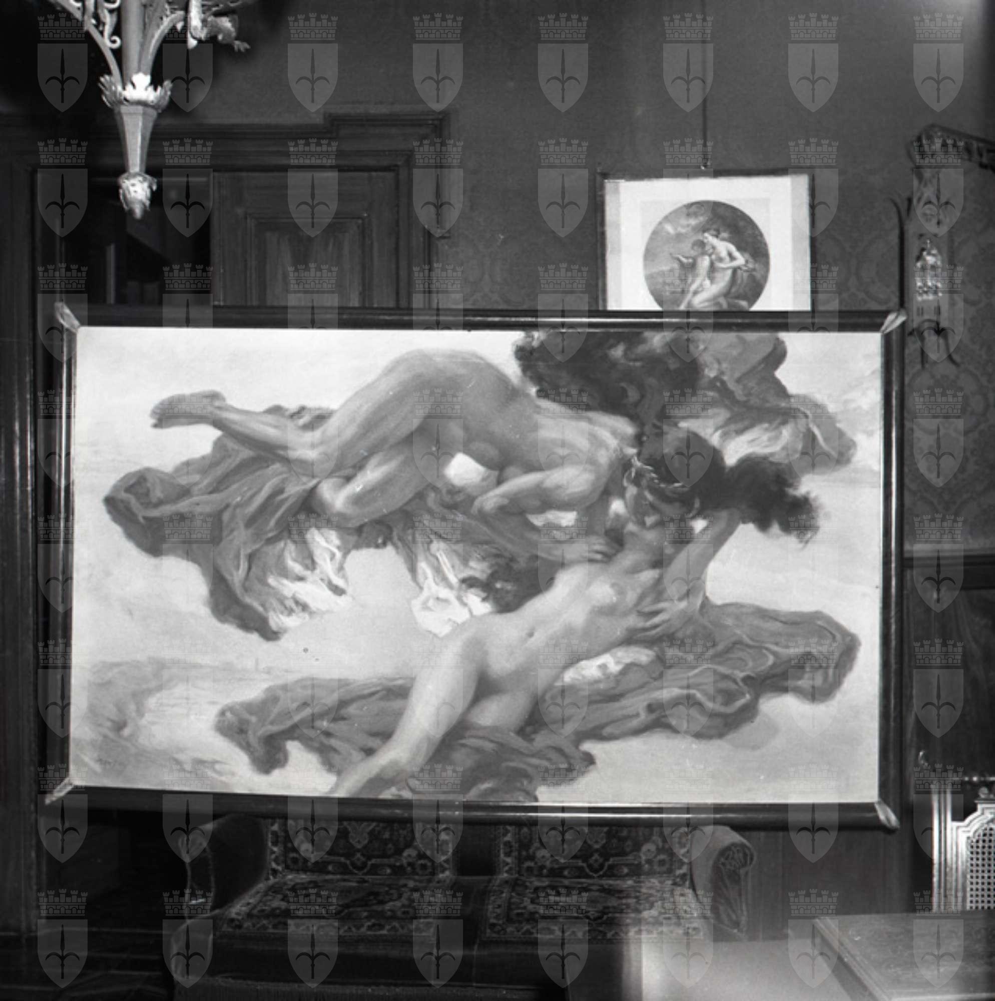 Due dipinti, Piramide di fiori a San Giusto di Ugo Flumiani e Le campane della redenzione di Carlo Wostry, fotografati in una sala del Civico Museo Morpurgo. Il dipinto di Wostry venne esposto per la prima volta al Caffe degli Specchi il giorno dell'annessione di Trieste all'Italia.