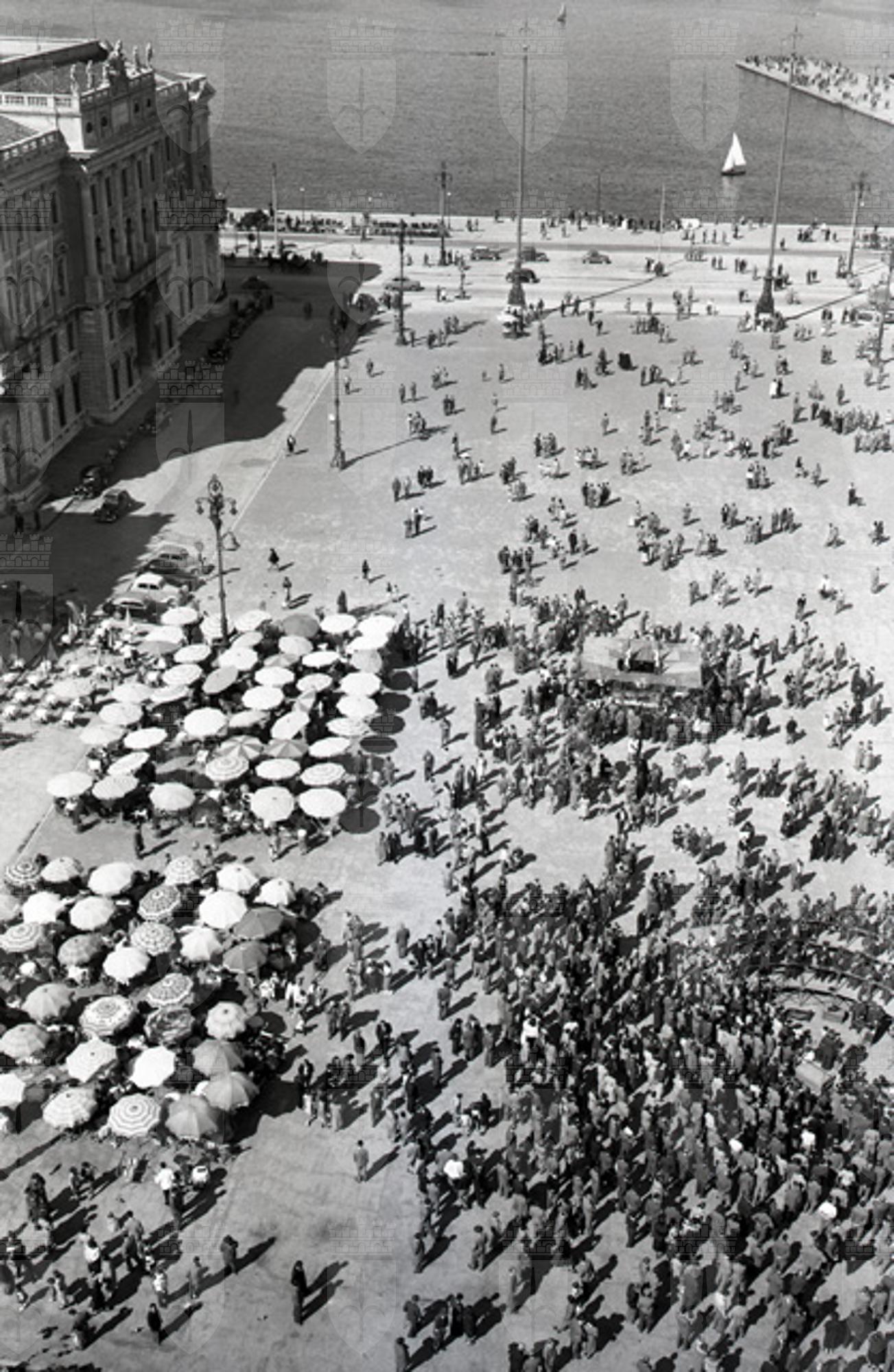 Il servizio comprende vedute di piazza Unità dall'alto in occasione della Festa dell'uva, altre vedute della città, delle rive e della baia di Sistiana