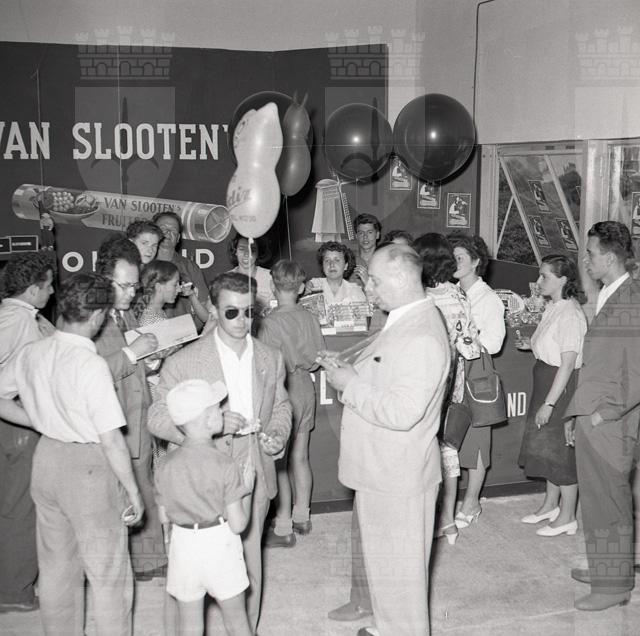 Riprese di un coro e di alcuni stand, fra cui Ameco ing. Martino rappresentante della ditta di elettrodomestici Miele, Van Slooten's Holland, Bombrini-Parodi Delfino
