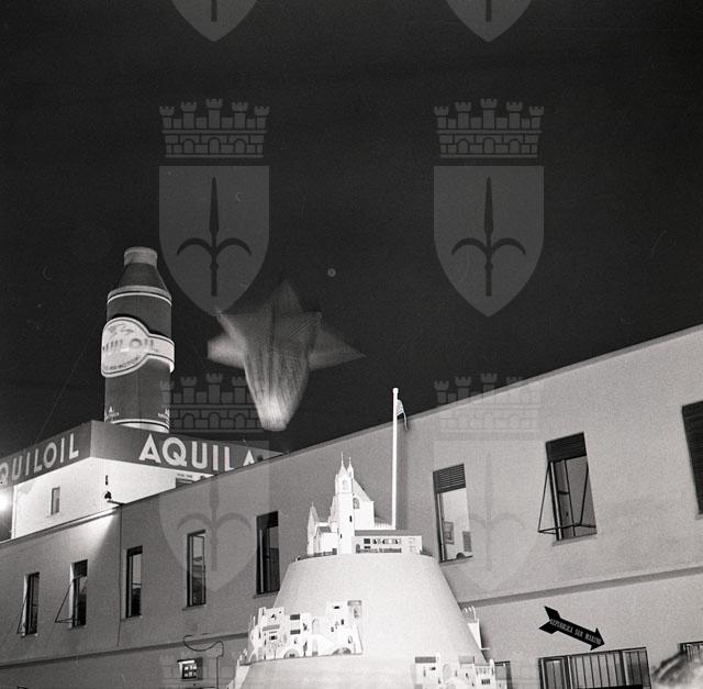Riprese degli esterni della Fiera con particolare riguardo allo stand dell'Aquiloil; foto di gruppo del Coro Aquila davanti all'ingresso principale della Fiera e davanti allo stand dell'Aquiloil; volo di palloni aerostatici