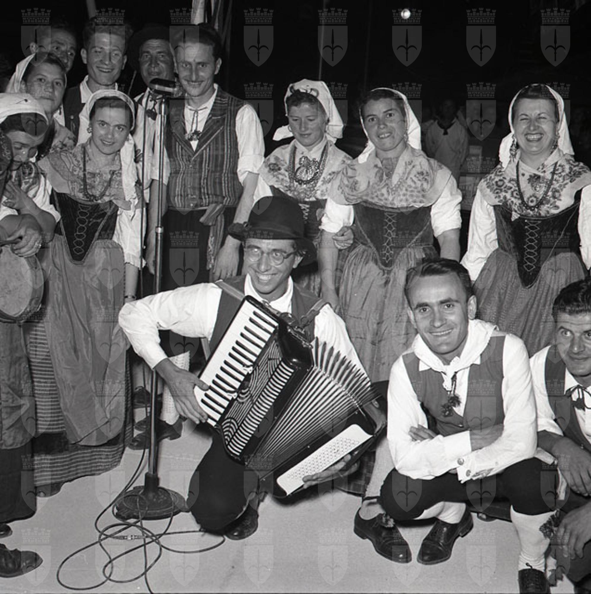 Spettacolo di un gruppo folkloristico, con sosta davanti al chiosco della Stock e foto di gruppo davanti allo stand delle Cantine Barone Leo Economo