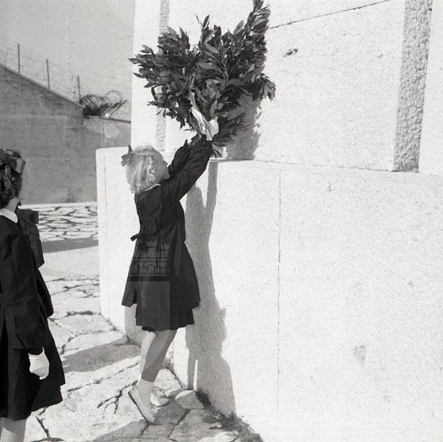 Le alunne della quinta elementare di San Stino di Livenza, vincitrici di un premio per il risparmio, sono le prime scolare d'Italia che vedono Trieste imbandierata. La foto è pubblicata su Il Giornale di Trieste del 13 ottobre.