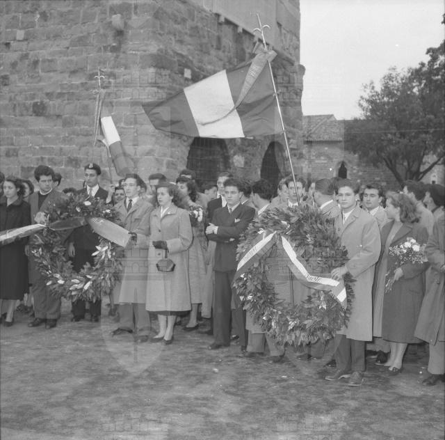 Il vescovo Santin benedice il labaro del Circolo studenti medi e quello del Movimento amicizie giovanili, al suo secondo anno di attivita. Madrina della manifestazione Marisa Bartoli, figlia del Sindaco