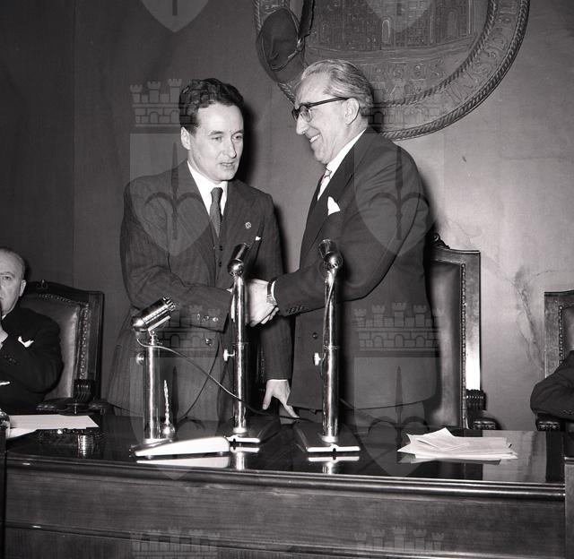 Il capitano Guido Musitelli, ufficiale triestino del 3. Reggimento artiglieria alpina della Julia, rientrato a casa dopo dodici anni di prigionia in Russia, viene ricevuto dal sindaco Bartoli