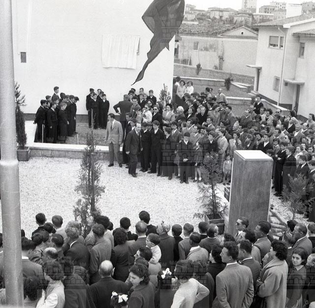 In località Chiarbola superiore, alla presenza del vescovo mons. Santin, di tutte le autorità locali e del sottosegretario alla presidenza del Consiglio on. Scalfaro, ha avuto luogo l'inaugurazione del Villaggio giuliano e dalmata realizzato dall'Opera per l'assistenza ai profughi giuliani e dalmati (da: Il Corriere dei Trieste, 9 maggio 1954). Nell'occasione viene scoperta una targa in memoria di Oscar Sinigaglia, morto l'anno precedente, già fondatore e presidente dell'Opera profughi. L'inaugurazione fa seguito ad un'altra cerimonia svoltasi in onore di Teodoro Mayer, con lo scoprimento di una lapide nello stabile di via San Francesco 4 (da: Trieste 1900-1999. Cent'anni di storia, v. 6, p. 284).