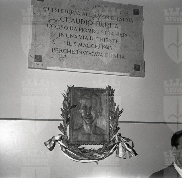 Scoprimento di una lapide, all'interno dell'istituto magistrale Amedeo di Savoia duca d'Aosta, dedicata alla memoria di un ex studente, Claudio Burla.Il 5 maggio 1945, il 21enne Claudio Burla, mentre manifestava in nome dell'italianità di Trieste in via Imbriani, veniva falciato, insieme ad altri quattro triestini, dal fuoco delle truppe jugoslave. Morirà quattro giorni più tardi. Il 25 marzo 2006 a tutti e cinque verrà conferita la Medaglia d'oro dal Presidente della Repubblica Ciampi.