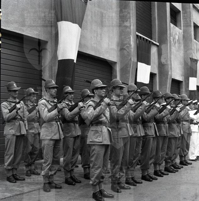 Commemorazione delle battaglie del 5 e 6 luglio del 1918 combattute sul Sile, sul Piave e sulle Alpi Giulie dal 7. e 8. battaglione delle Guardie di finanza. La manifestazione si svolge nella caserma Postiglioni sul molo Fratelli Bandiera, in presenza di don Beari, cappellano militare, del magg. Ravotto, comandante del Circolo e del gen. Rostagno, comandante del Corpo delle Guardie di finanza.
