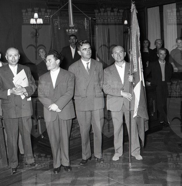 Il sindaco Bartoli riceve un gruppo di agricoltori di Osio di Sotto, accompagnati dal loro sindaco Luigi Chiesa e dal parroco don Giulio Pelliccioli.