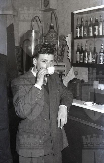 I fotogrammi immortalano scene di balli, il bar con un giovane uomo che sorseggia il caffè, sullo sfondo bottiglie e damigiane.