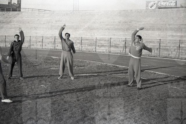 Il giornalista Dante di Ragogna, gia' capo dei servizi sportivi de Il Piccolo, intervista il ciclista Guido De Santi in allenamento con la U.S. Triestina calcio