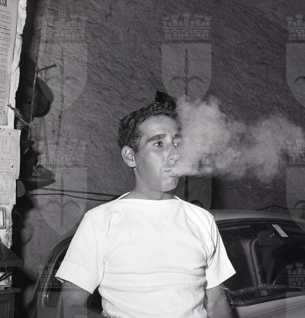 Cartello con divieto di fumo disatteso dalla presenza di un meccanico fumatore.