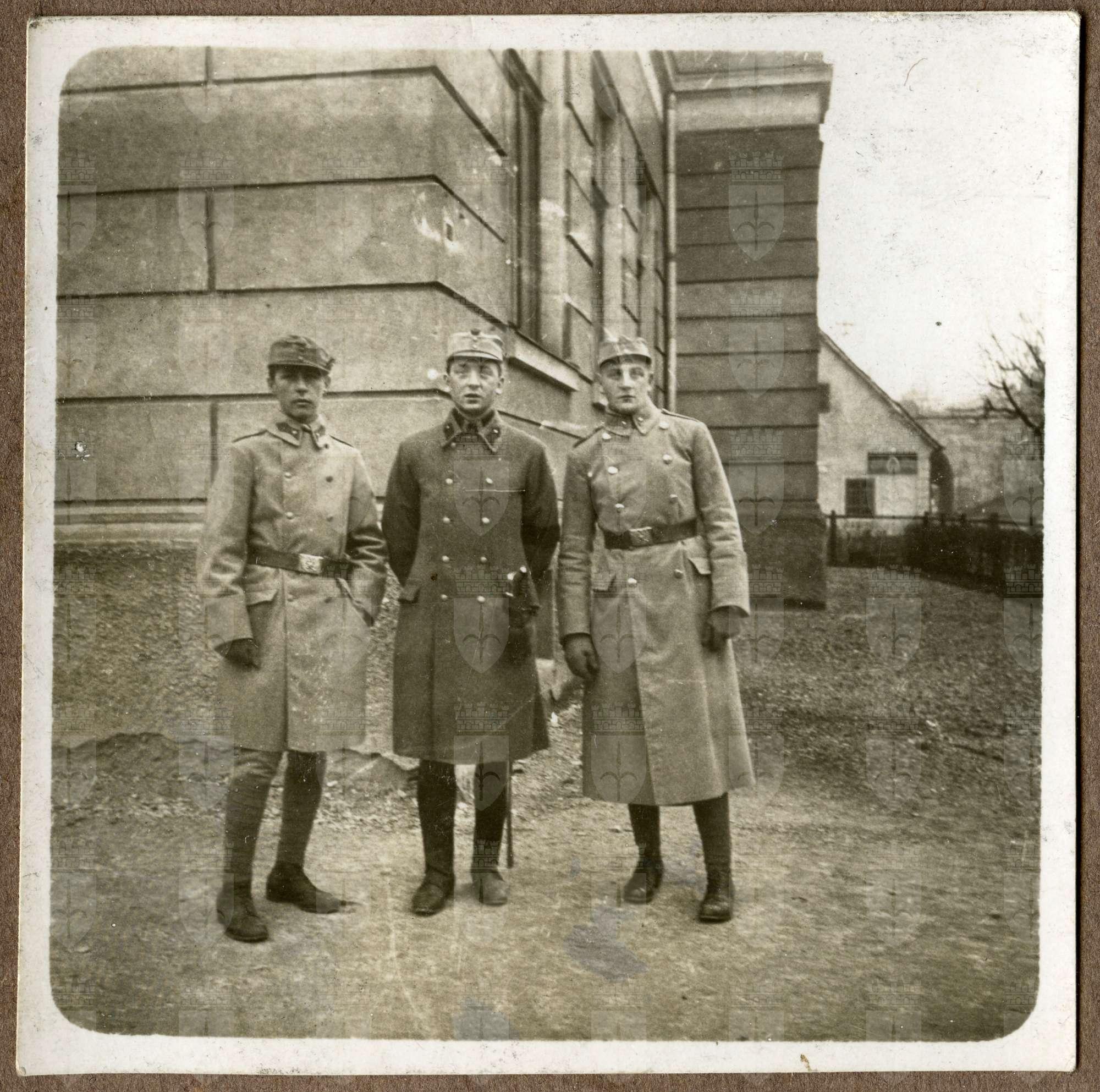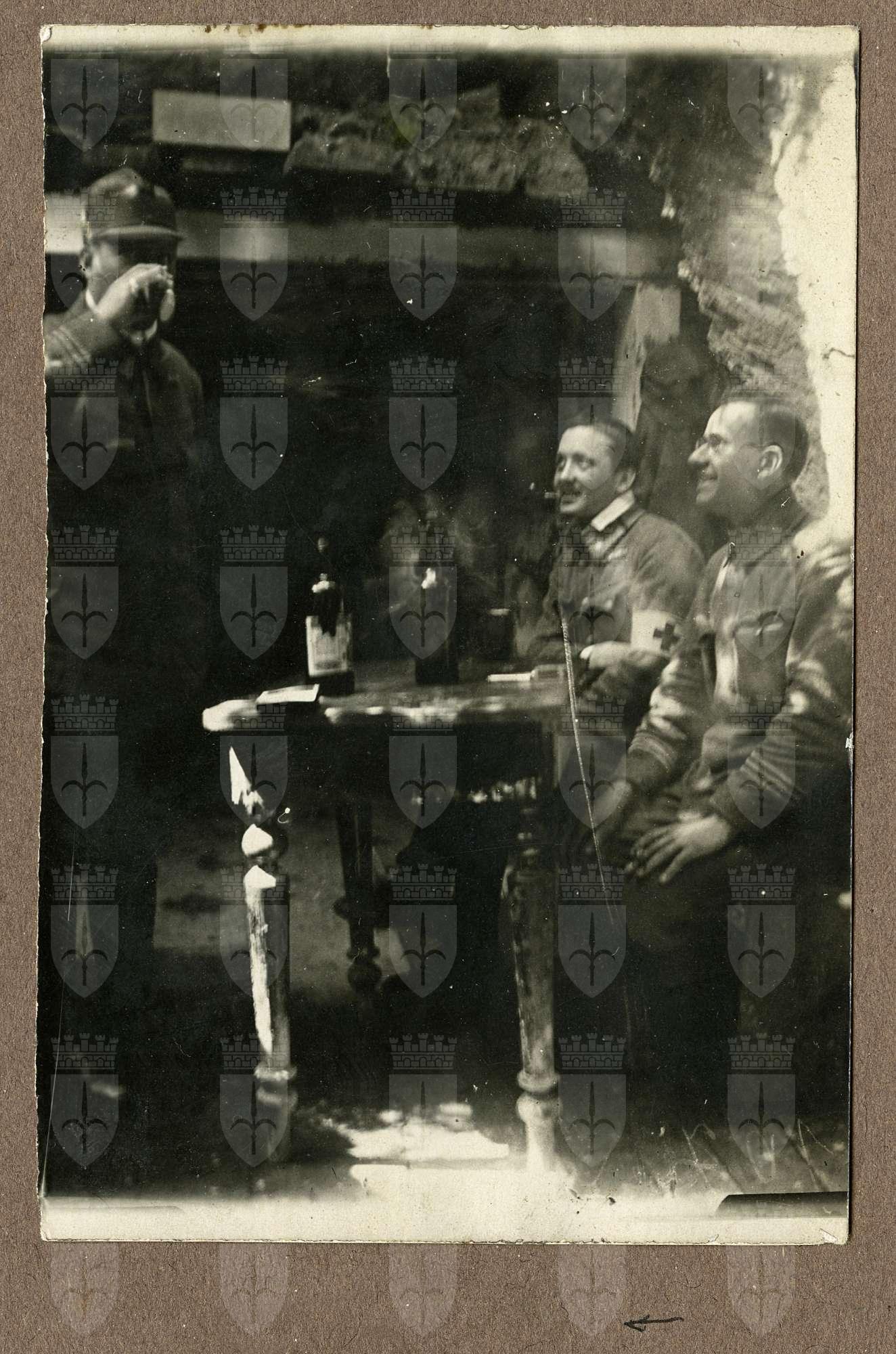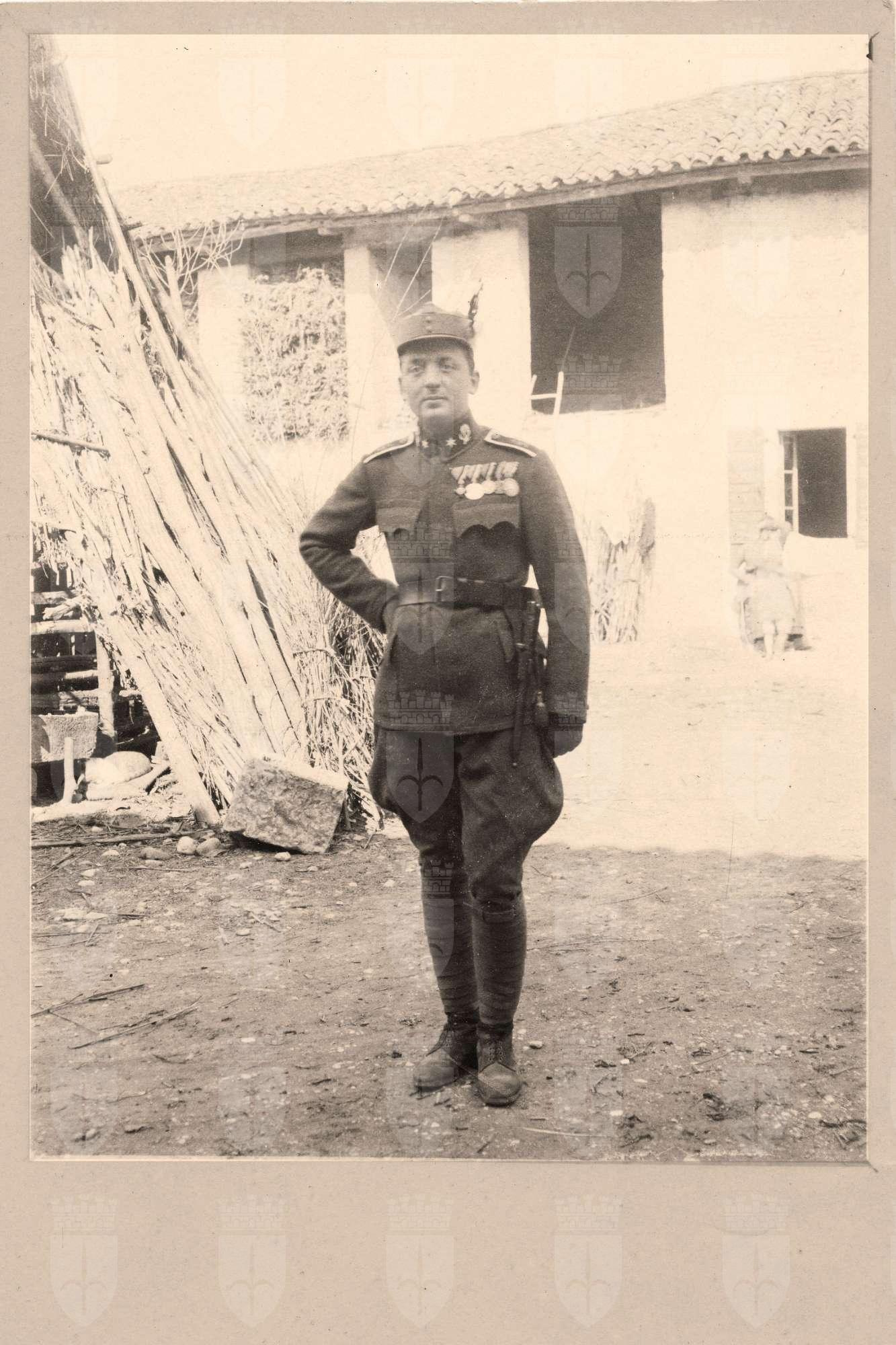 Le foto descrivono Mario Slavich in diverse occasioni. In divisa a cavallo, tra due commilitoni senza uniforme, con due soldati. A Rivignano con Angela. Mario, il primo a sinistra, un civile ed un gruppo di soldati davanti ad una caserma. Mario tra due soldati. Maria, Angela e Mario soldato con il bracciale della Croce Rossa. Ancora Mario mentre esegue una medicazione.Mario a figura intera
