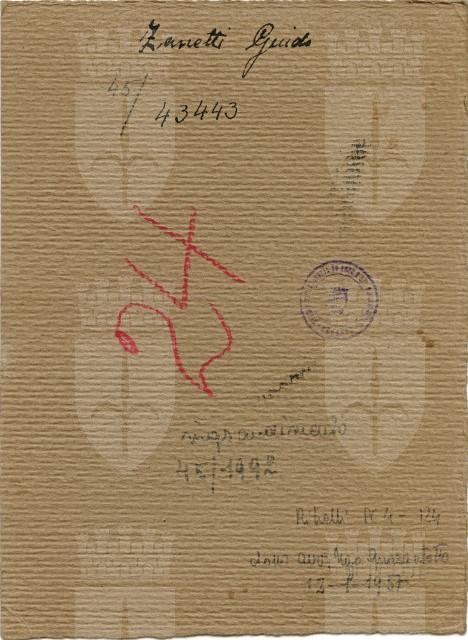 Guido Zanetti, nato a Trieste nel 1895, studente di Giurisprudenza a Bologna, fu uno degli animatori del movimento studentesco. Si arruolò volontario nel luglio del 1915 nel 2° Rgt. granatieri. Fu gravemente ferito sul S. Michele il 7 agosto 1916 e morì due giorni dopo all'Ospedale 074 di Romans.