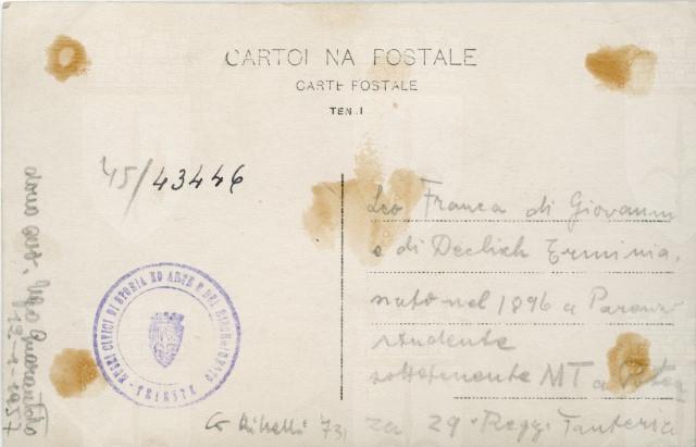 Leo Franca, nato a Parenzo nel 1896, volontario nel 29° Rgt. fanteria