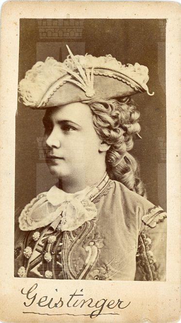 In costume; soprano austriaca definita la "regina delle operette", è una delle prime interpreti delle opere di J. Offenbach, J.Strauss, K.Millpker e F. von Suppè