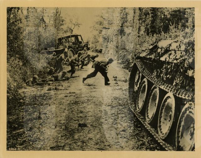 Fanteria alleata sotto il fuoco nemico nei pressi di Periers