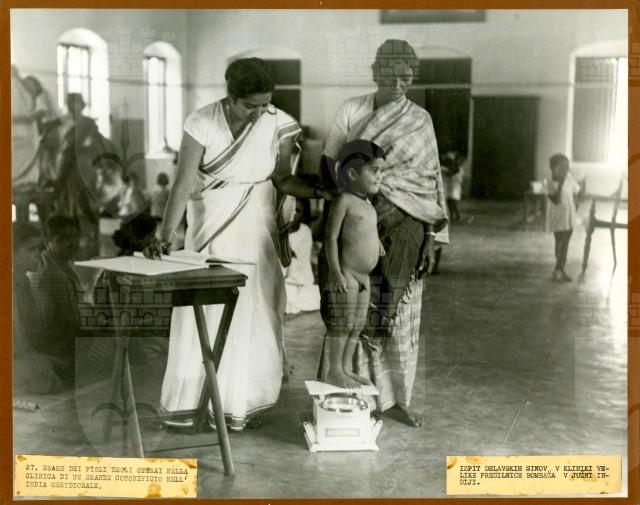 Esame dei figli degli operai nella clinica di un grande cotonificio nell'India meridionale