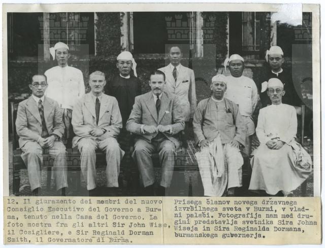 Membri del Consiglio Esecutivo del Governo a Burma. La foto mostra fra gli altri: Sir John Wise, il Consigliere e Sir Reginald Dorman Smith, il governatore di Birmania