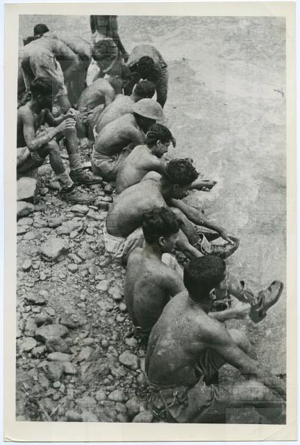 Soldati indiani lavano i loro stivali dopo esser stati nella jungla di Arakan.