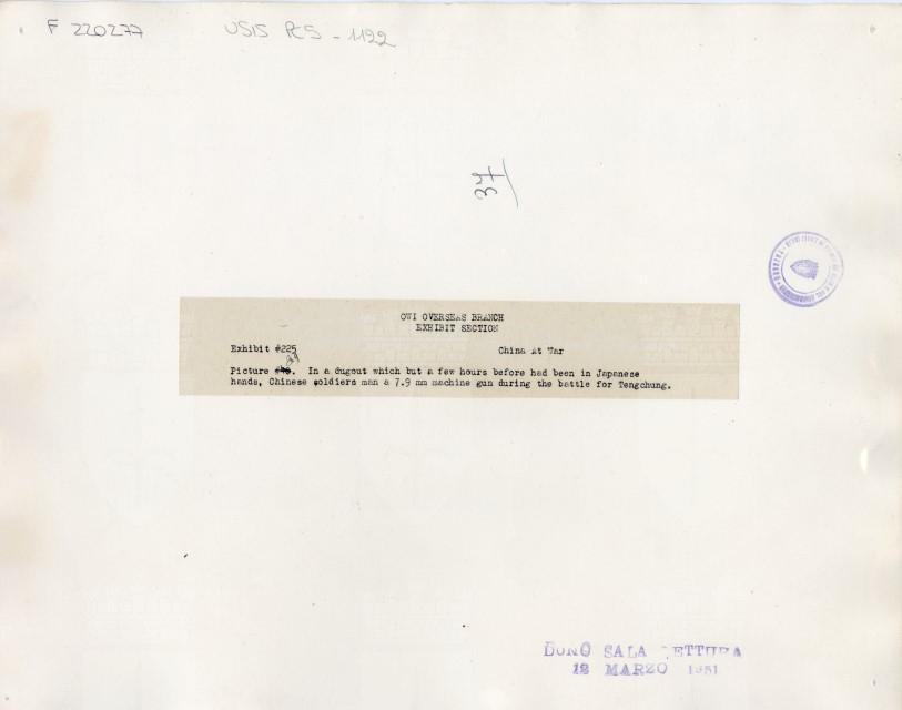 In a dugout which but a few hours before had been in Japanese hands, Chinese soldiers man a 7.9 mm machine gun during the battle for Tengchung