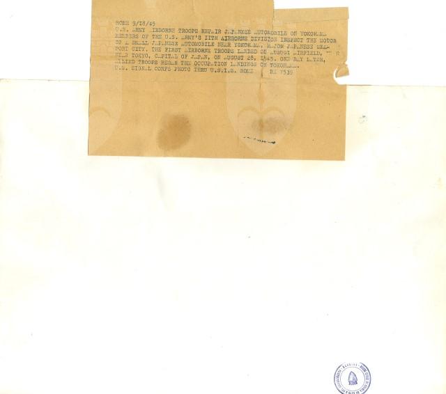 Una truppa americana dell'undicesima divisione aerea ispeziona il motore di un'automobile giappponese nella città di portuale di Yokohama, invasa il 29 agosto 1945.