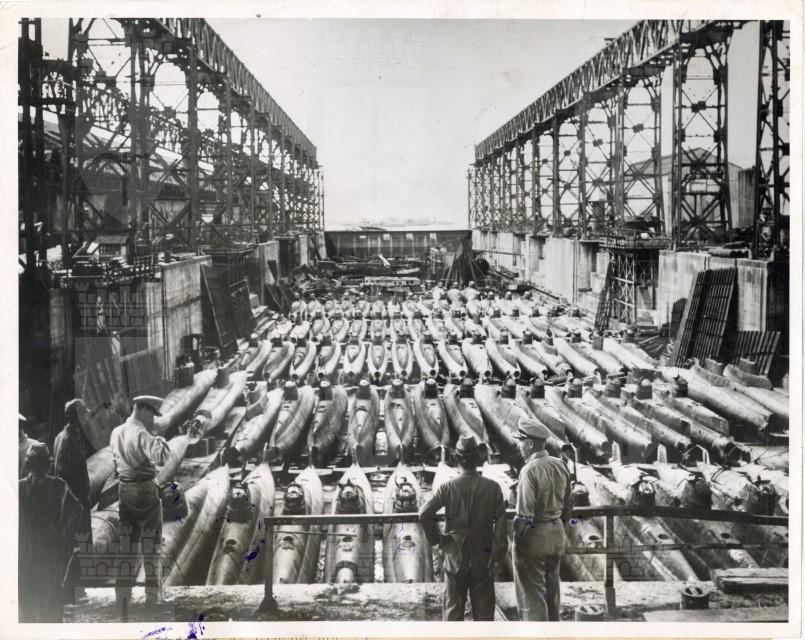 Alcuni Ufficiali della Marina americana ispezionano la conquistata base navale di Kure, sull'isola di Honshu.