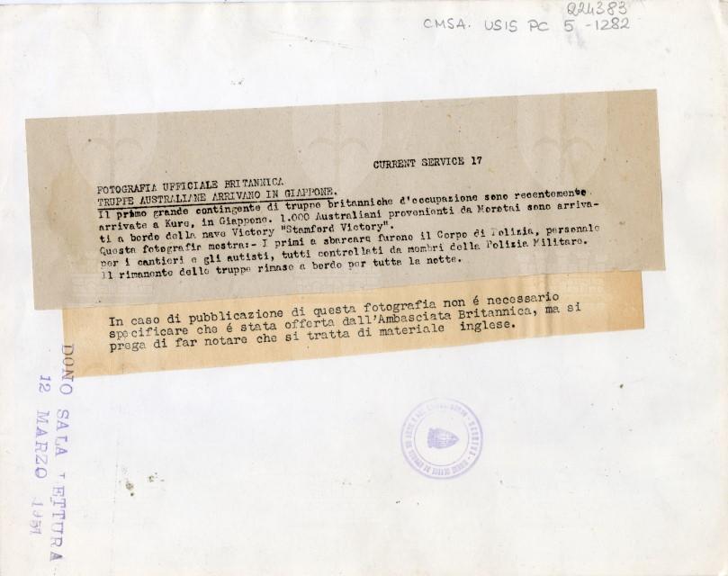 Il Corpo di Polizia australiano sbarca a Kure in sostegno del contingente inglese.